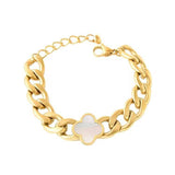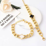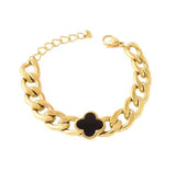 The Noria Bracelet exudes bold elegance with its chunky gold chain and signature black clover charm. Made from 316 stainless steel, it’s completely tarnish-resistant and designed to shine for years. The perfect balance between modern style and timeless sophistication — ideal for any occasion.
