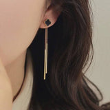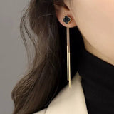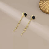 Chic gold-plated earrings featuring a black clover design with long dangling chains. Lightweight and elegant, perfect for adding a touch of sophistication to both casual and evening looks.