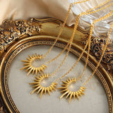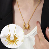 Elegant 316 pure stainless steel necklace featuring a unique sun-inspired pendant in shiny gold color. Crafted to resist tarnish and rust, making it durable for daily wear while adding a bold and stylish touch to any outfit. Perfect as a statement piece or a special gift.
