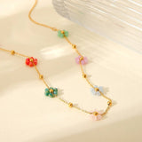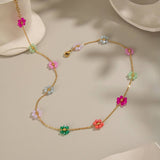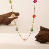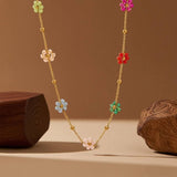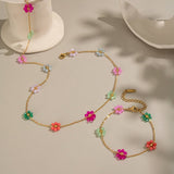 Featuring a gold-plated chain necklace and bracelet adorned with multi-coloured beaded flowers — this set adds a fresh, youthful touch to any outfit.