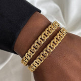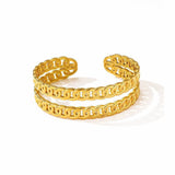 Helia Bracelet – Stainless Steel 316 A bold open cuff bracelet crafted from 316 stainless steel with a radiant gold plating. Featuring a unique interlinked chain design inspired by the power of the sun, combining strength with refined elegance. Perfect for modern everyday wear.